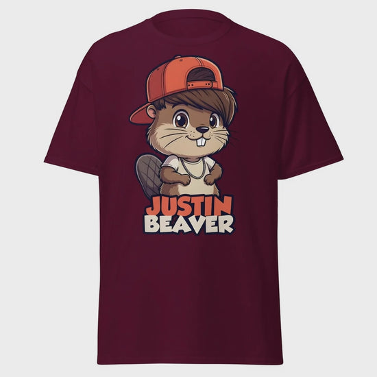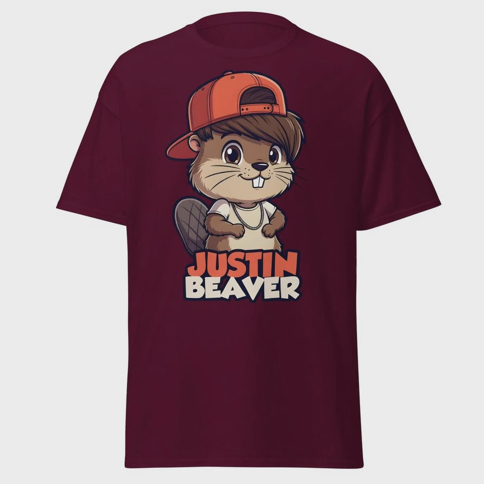 Give your wardrobe a "dam" good upgrade with this Justin Beaver graphic tee. Featuring a stylishly feathered hairstyle, a sideways cap, and some serious swagger, this beaver is ready to hit the world stage (or just the local creek). Itās the perfect blend of pop culture parody and adorable animal puns thatās bound to get a "Belieber" out of everyone who sees it.